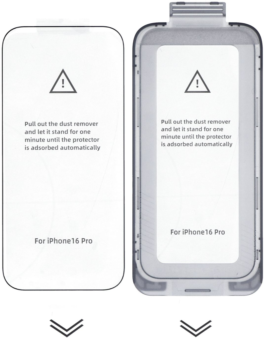 • Neues gehärtetes Glas kompatibel mit Apple iPhone 16 Pro. Im Set enthalten sind das Glas und der Easy Kit-Rahmen für eine einfache Montage. Beispielbilder.