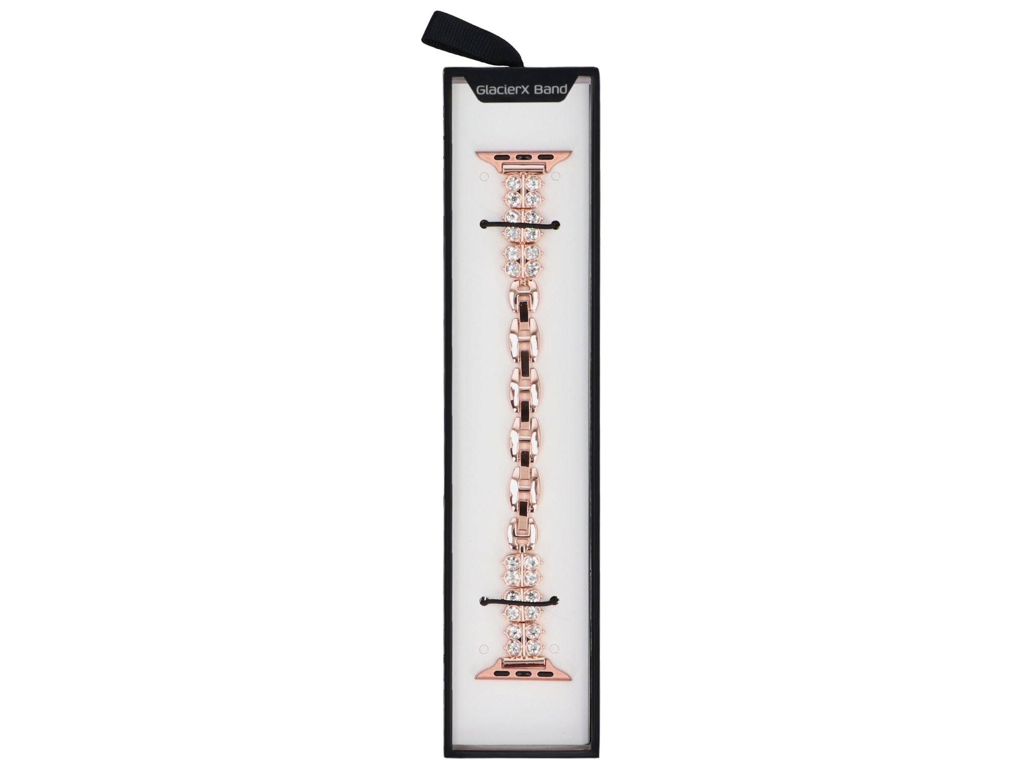 • Die Gliederarmband GlacierX ist für die Apple Watch 38/40/41mm gedacht. Farbe Gold, mit Zirkonia verziert. Die Länge ist durch vier abnehmbare Glieder verstellbar. Produkt neu, verpackt in der Originalverpackung.