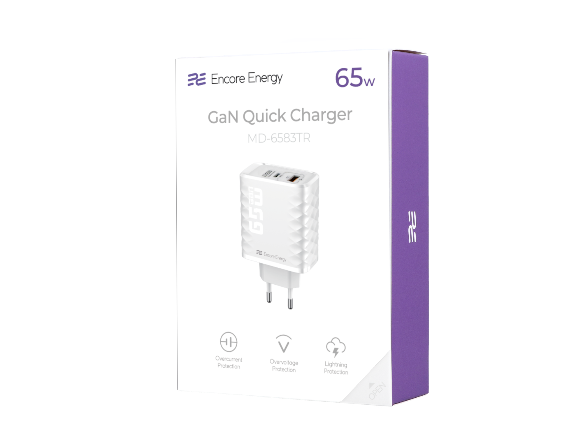 Neues GaN-Netzteil 65W USB-A + USB-C QC PD Encore Energy MD-6583TR