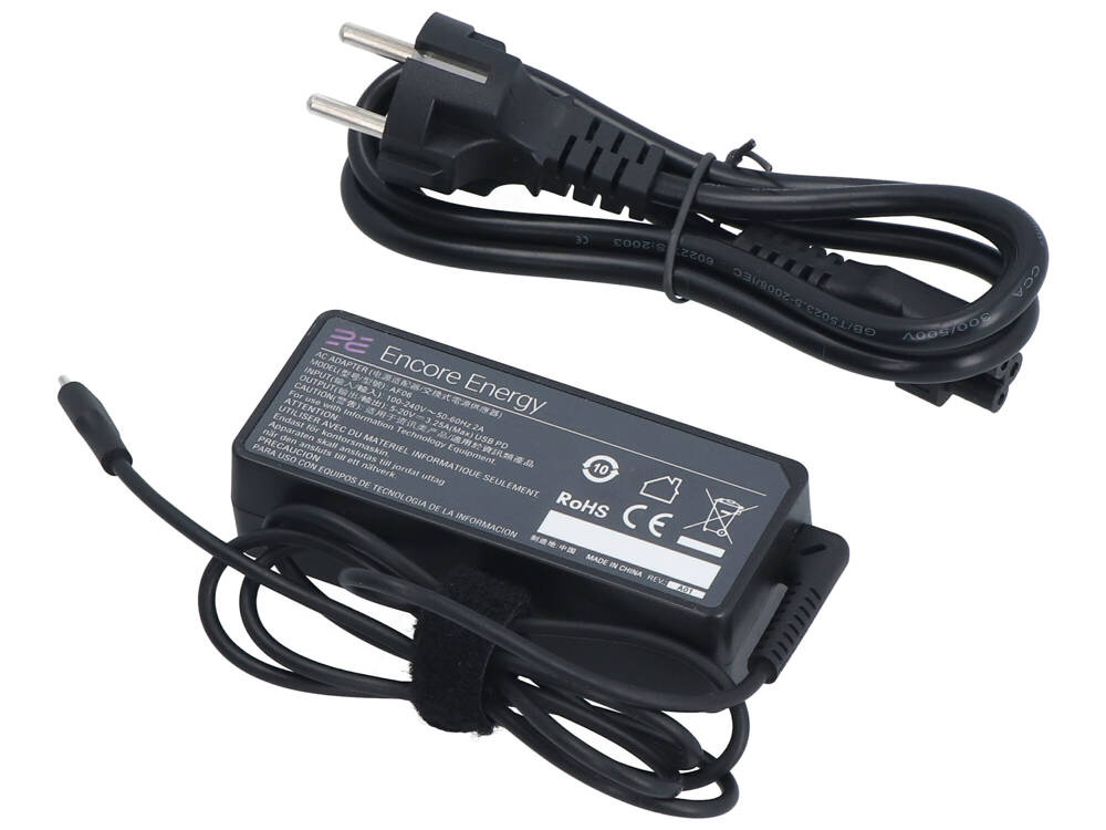 • Uniwersalny zasilacz Encore Energy. Wtyk: USB-C - zgodny z większością urządzeń, które wymagają do 65W. Wysokiej jakości zamiennik. W zestawie kabel zasilający. Zdjęcia poglądowe.