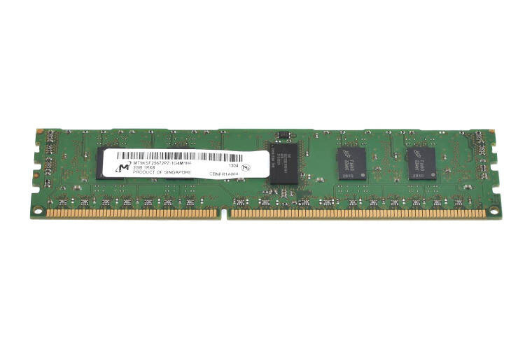 Poleasingowe pamięci RAM firmy Micron o pojemności 2GB DDR3 w jednej kości. Pamięci w idealnym stanie technicznym. Nie są kompatybilne z "zwykłymi" PC-tami! ECC BUFFERED!