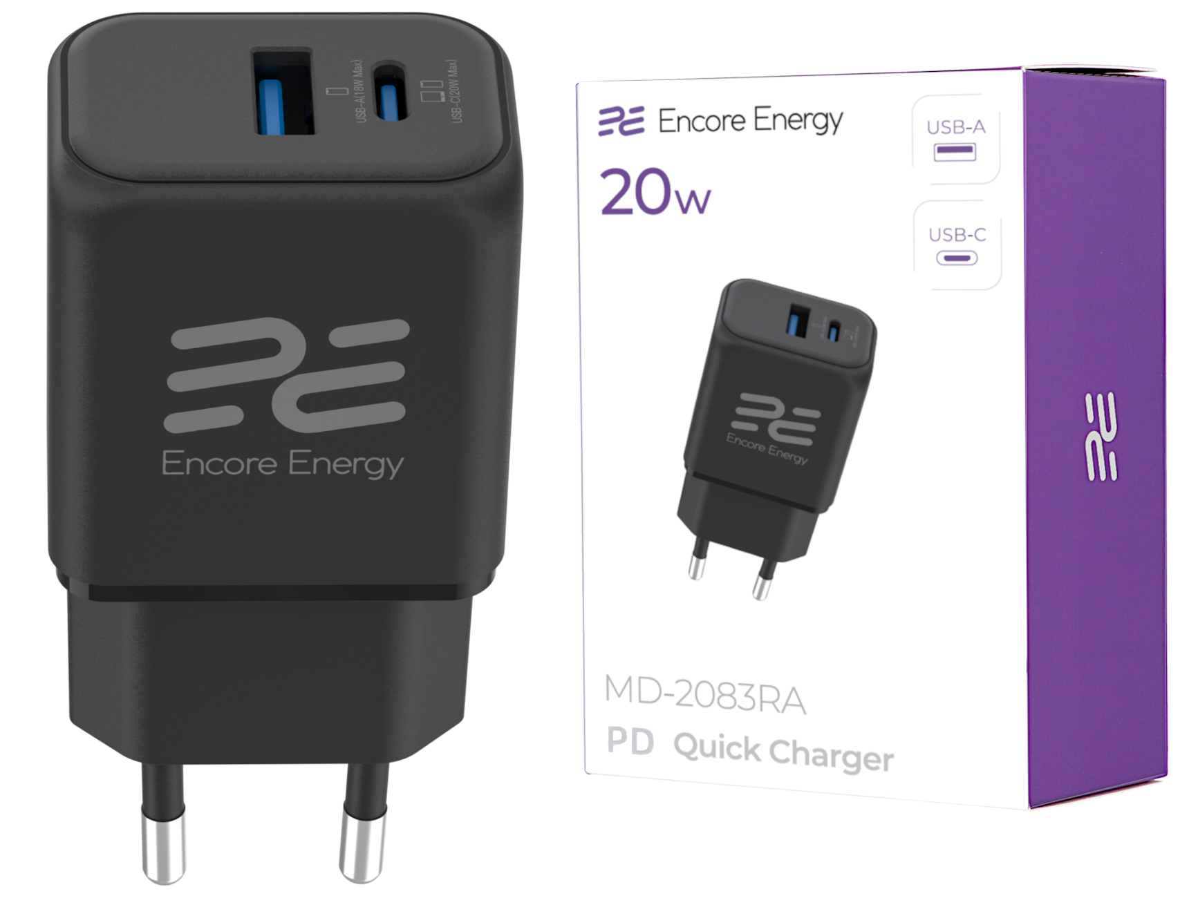 Nowa ładowarka sieciowa Encore Energy PD 3.0 Quick Charge 4.0 USB-A USB-C 20W adapter MD-2083RA